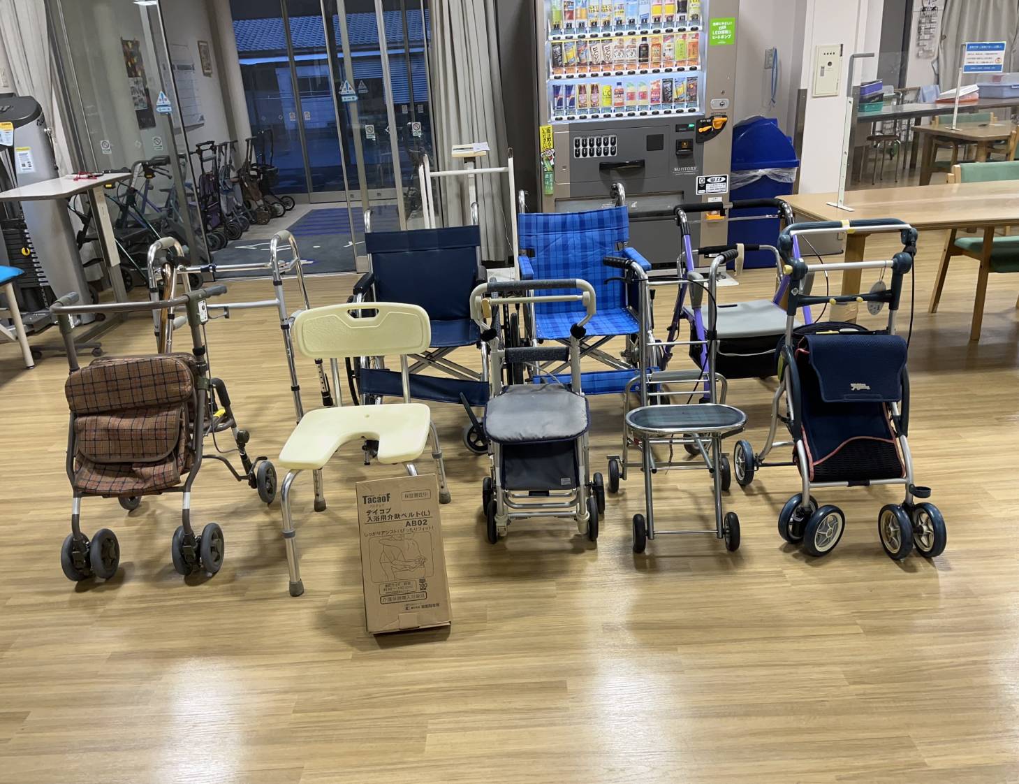 車椅子2台、シルバーカー2台、歩行器4台、入浴介助チェアー1台、介助用ベルト2本