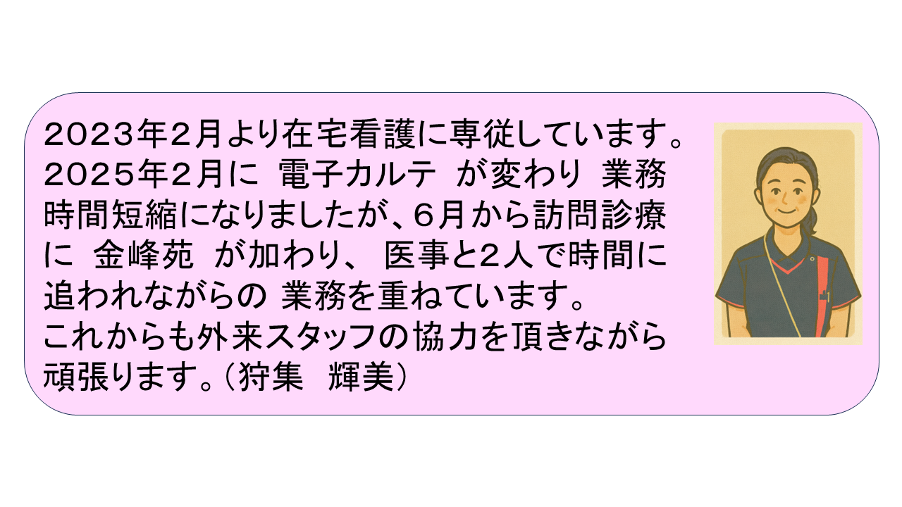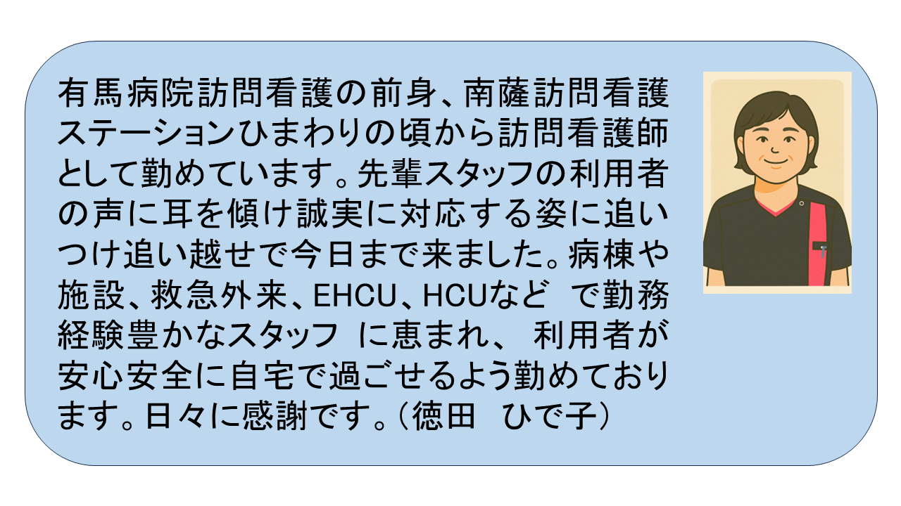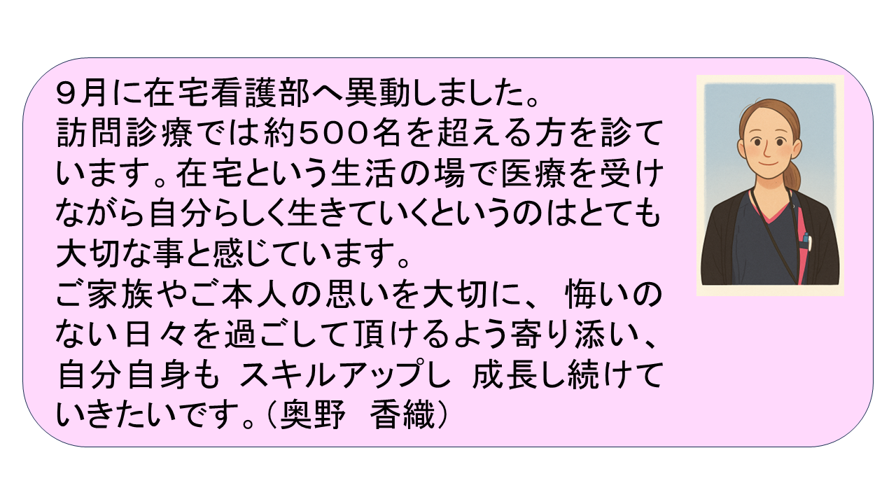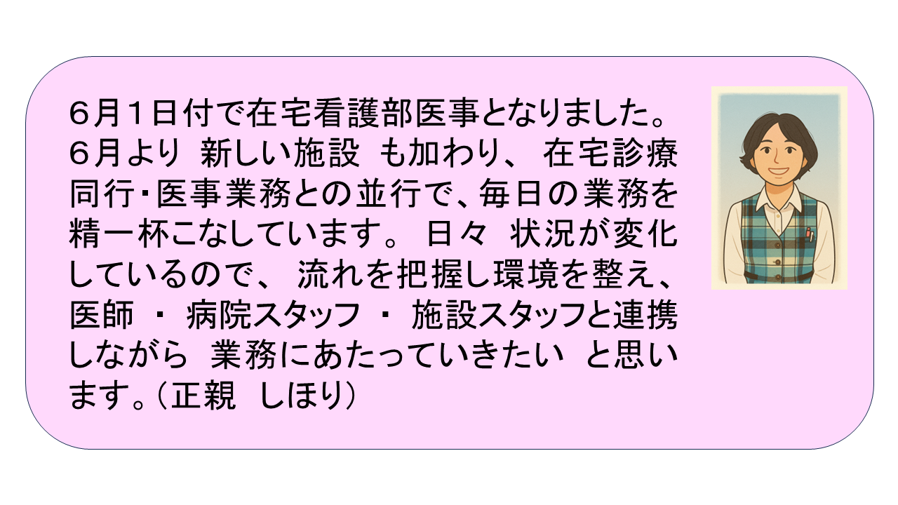 主治医の指示を受け、病院と同じような医療処置も行います。