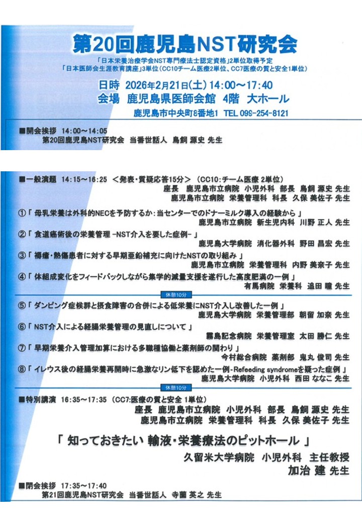 2026年2月21日(土)に開催される 第20回鹿児島NST研究会で、